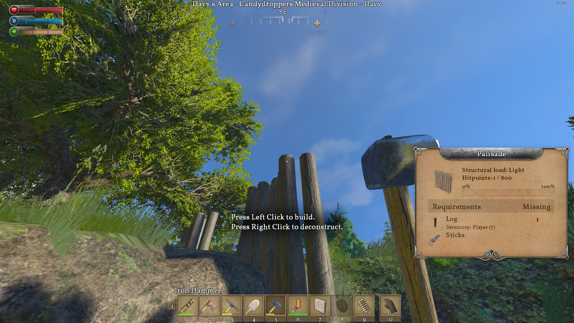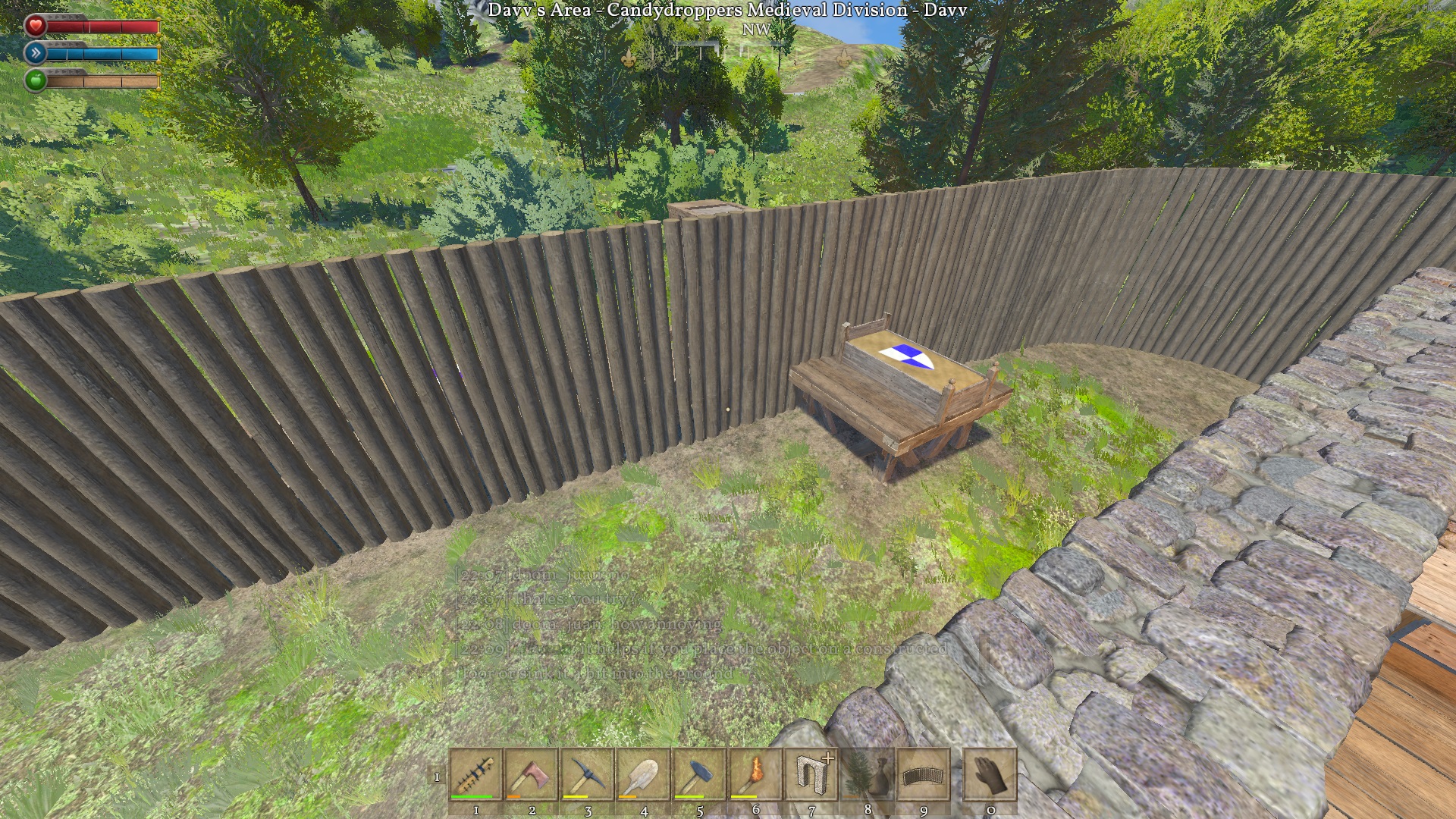 | Description | I have created palisade perimeter in a claim. At some point i was unable to finish palisade pieces because I could not interact with them. I could not finish building them nor deconstruct. It's as if the palisade piece was not there, yet it is there because it obstructs my movement. I have tried deconstructing random pieces of palisade but it didn't help. I think it started happening when I placed palisade gate, but deconstructing and reconstructing it didn't help either. Palisade is connected to a support at certain point (remnants of old building). | ||||