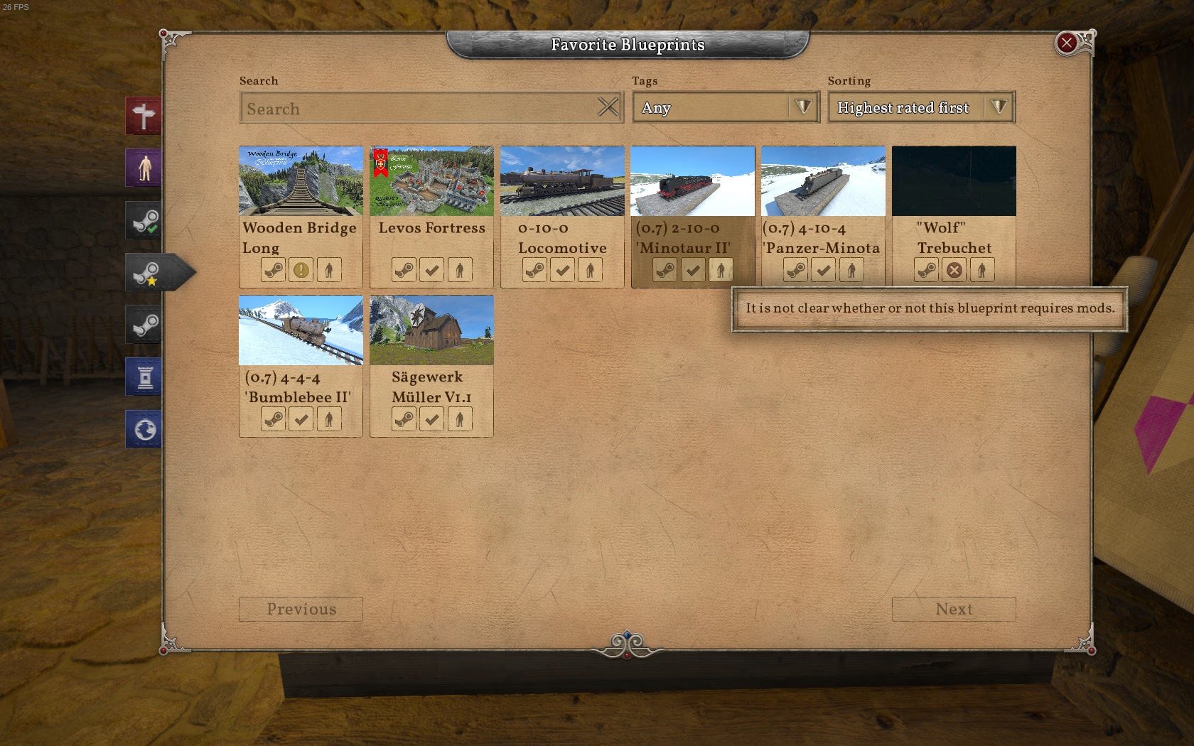 | Summary | 0000026: Blueprints on page screen always say "It is not clear whether or not this blueprint requires mods" | ||||